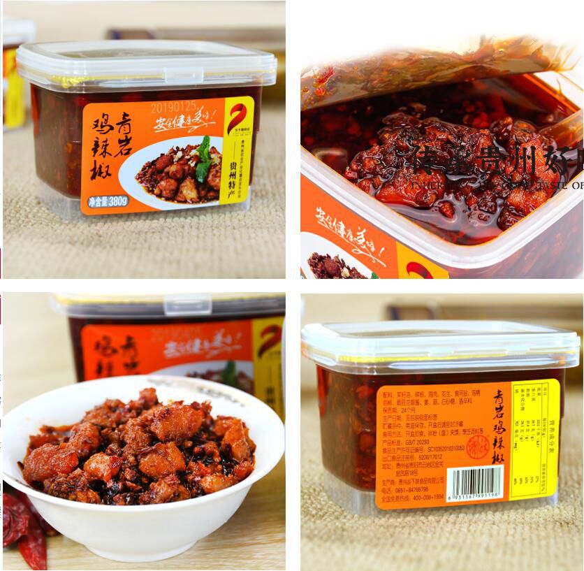 本品采用贵州百年青岩古镇传统工艺炒制,色泽红润,嫩辣鲜香,鸡肉甘香爽口,麻味纯正、回味无穷、营养美味。